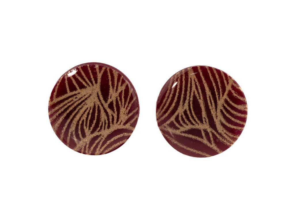 Barevné náušnice bordó - Zlaté květy