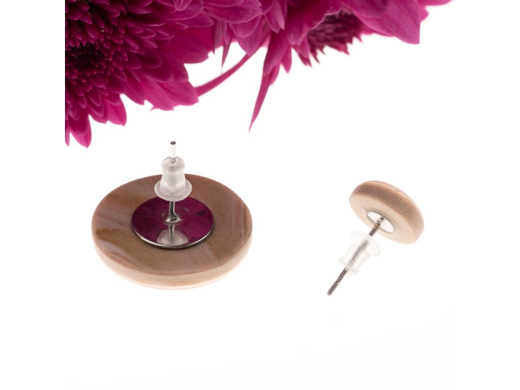 Tyto ručně vyráběné náušnice z vytvrzené polymerové hmoty jsou zalité křišťálovou pryskyřicí, která působí jako sklo – je ale nerozbitná a lehká, takže je na uchu téměř necítíš.