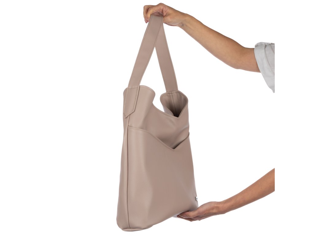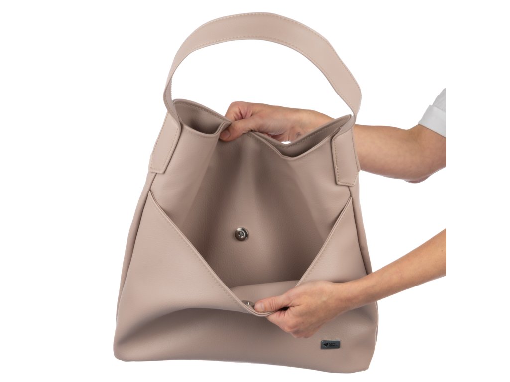 Stylovou dámskou kabelku City Shopper jsme vytvořili pro ženu, která potřebuje krásnou, velkou a praktickou kabelku, do které se toho opravdu hodně vejde. Kabelka je zajímavá tvarováním horní linie kabelky i vnější kapsy, které je inspirováno tvarem našeho loga a naší ikonickou asymetrickou klopou.