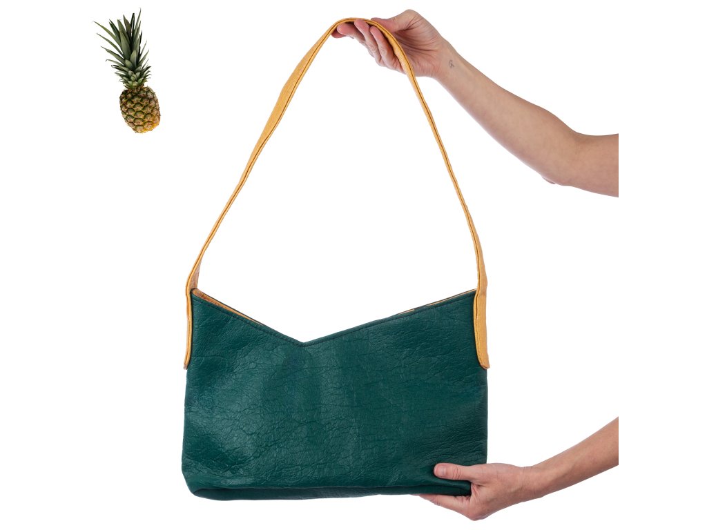 Naši novou řada kabelek šijeme z materiálu Piñatex, což je je inovativní rostlinný materiál vyrobený z vláken ananasových listů – obnovitelné suroviny, která vzniká jako vedlejší produkt zemědělství. Tento materiál je veganský, neobsahuje škodlivé chemikálie a je vyráběn s důrazem na udržitelnost.