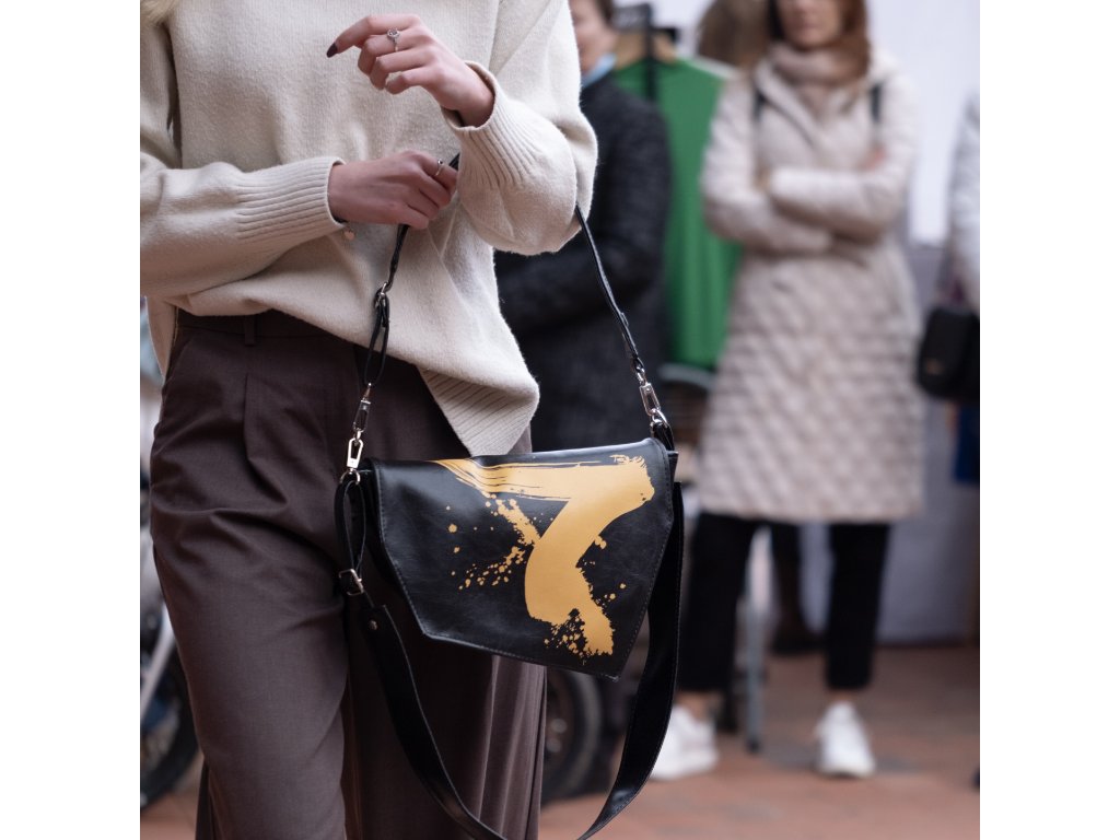 Kabelka z kolekce Lovetouch spojuje minimalistický střih s originálním uměleckým potiskem. Výchozím bodem byly velkoformátové kaligrafické malby výtvarnice a tatérky Moniky Tajovské a naše kabelka Muse s minimalistickou klopou, která posloužila jako plátno. Kaligrafické malby, které pro nás Monika vytvořila, jsme přenesli na upravenou verzi kabelky – a každá se tak stala uměleckým dílem.