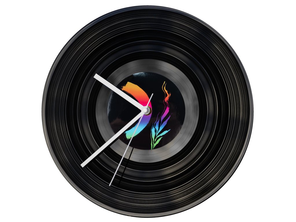 Střed vinylové desky přelepujeme originálním designem – odolnou vinylovou samolepkou. Celé hodiny tak působí jako stylový doplněk i drobný umělecký objekt.