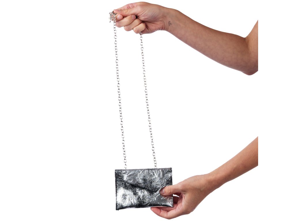 👜 Elegantní kapsička je zavěšená na popruhu z kovového řetízku a uvnitř skrývá praktický karetníček. Můžeš ji používat i jako malou peněženku. Díky řetízku máš doklady i peníze neustále po ruce – a přitom volné dlaně na tanec, drink nebo focení.