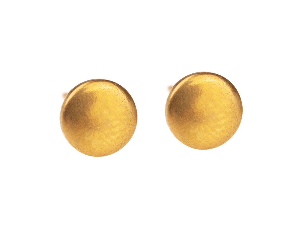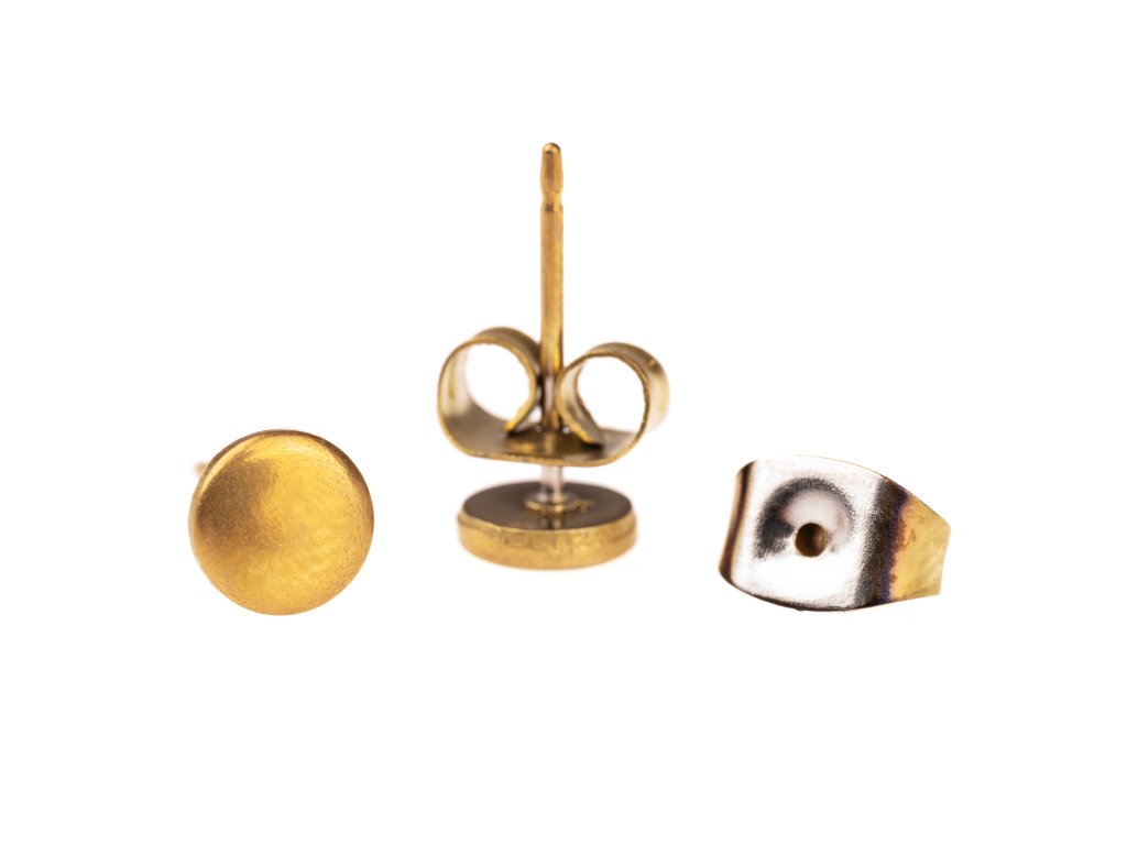 Minimalistické náušnice pecky z chirurgické oceli s výjimečně odolným a hypoalergenním povrchem. Zlatá barva vzniká nanesením biokompatibilního nanopovlaku, schváleného i pro lékařské implantáty.