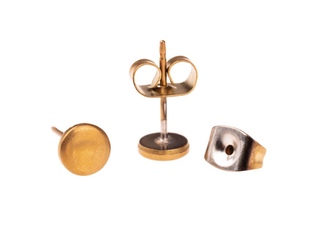 Minimalistické náušnice pecky z chirurgické oceli s výjimečně odolným a hypoalergenním povrchem. Medově zlatá barva vzniká nanesením biokompatibilního nanopovlaku, schváleného i pro lékařské implantáty.