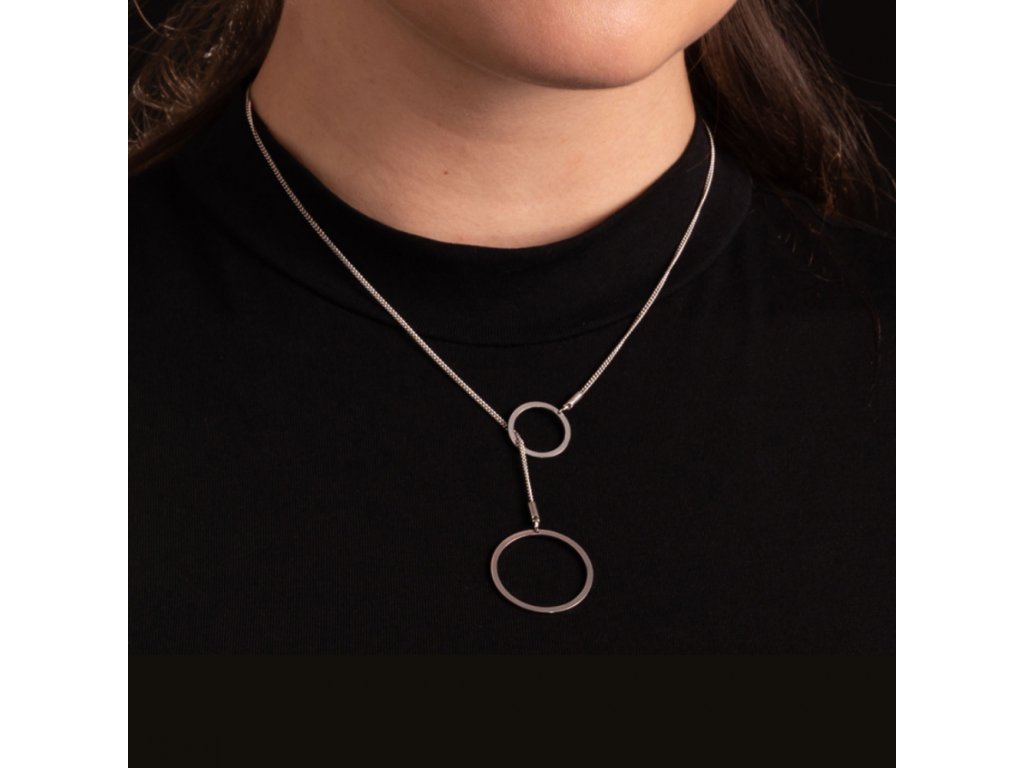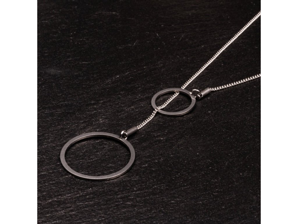 Náhrdelník je součástí naší kolekce ocelových šperků s názvem Elementary. Vyrábíme ho z dokonale opracované a ohlazené nerezové oceli. Přívěsky jsou zavěšeny na nerez ocelovém jemném řetízku. Délka řetízku je hravě variabilní - řetízek je volně provlečen menším kruhem a vzdálenost mezi oběma kruhy si můžete posunovat. Řetízek se zapíná vzadu na karabinku.