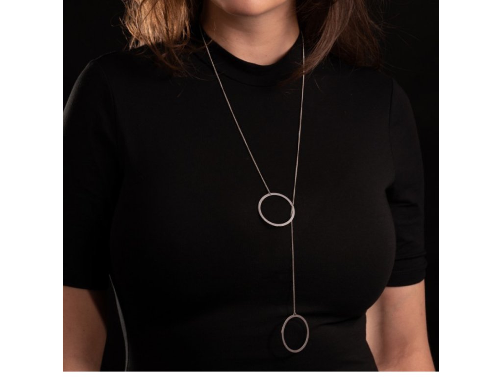 Náhrdelník je součástí naší kolekce ocelových šperků s názvem Elementary. Vyrábíme ho z dokonale opracované a ohlazené nerezové oceli. Přívěsky jsou zavěšeny na nerez ocelovém jemném řetízku. Délka řetízku je hravě variabilní - řetízek je volně provlečen menším kruhem a vzdálenost mezi oběma kruhy si můžete posunovat. Řetízek se zapíná vzadu na karabinku.