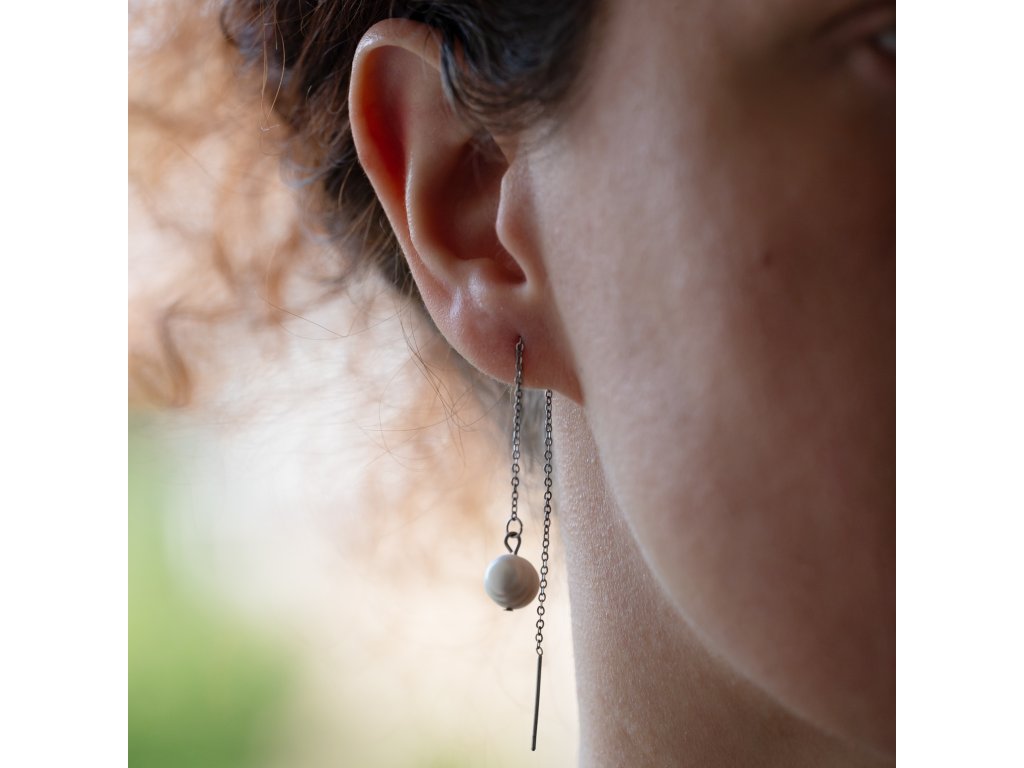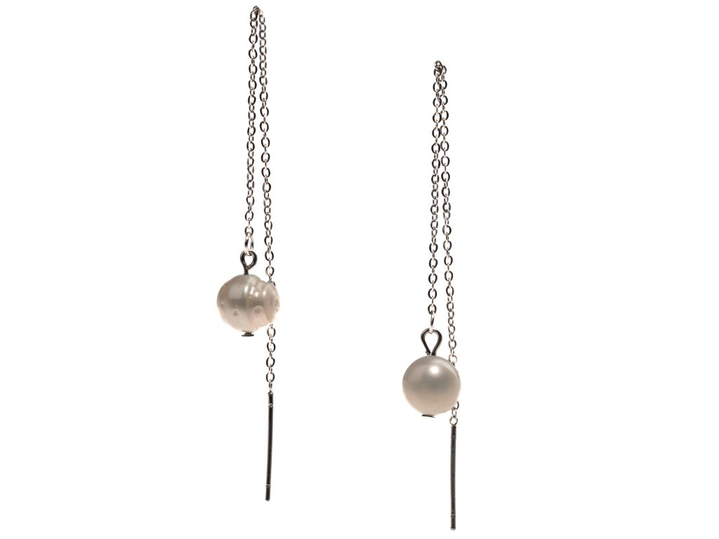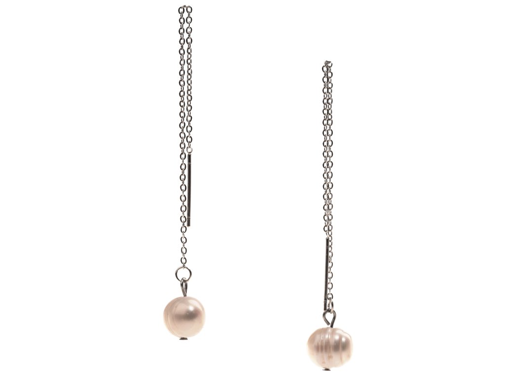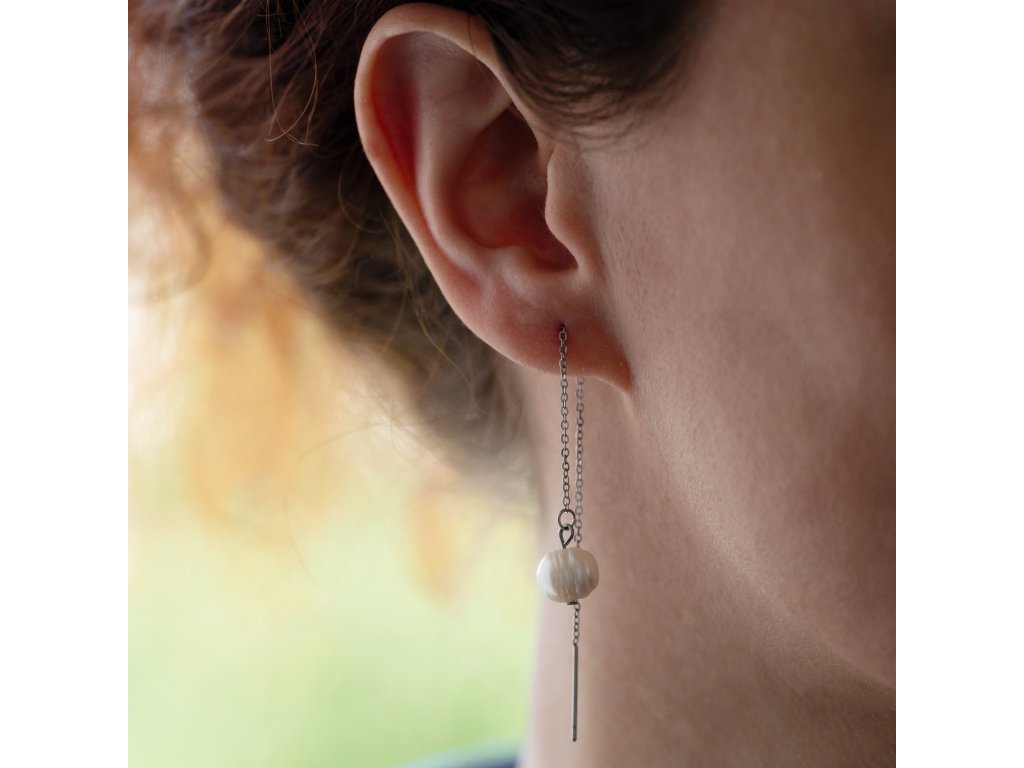 Krásné a originální náušnice s bílými říčními perlami zavěšenými na jemném nerez ocelovém řetízku jsou zároveň elegantní, nadčasové i trendy. Koncovku řetízku si i s řetízkem snadno provléknete ušní dírkou a perlu necháte volně viset. Délku si můžete uzpůsobit tak, jak vám vyhovuje.