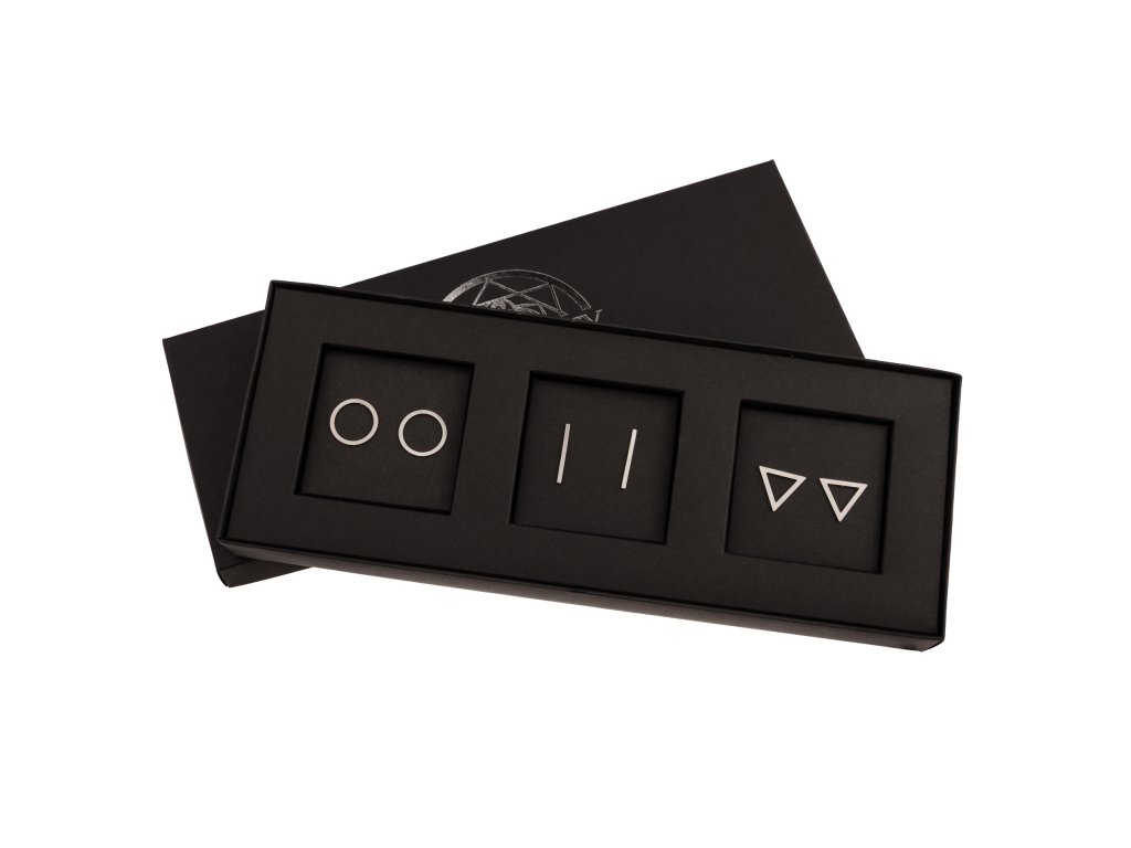 Trojice elegantních pecek z lesklé chirurgické oceli, které k sobě ladí, ale každá má vlastní styl. Můžeš je libovolně kombinovat, nosit asymetricky, v každém uchu jinou — je to jen na tobě. Tahle geometrická trojice snese jakýkoliv rozmar. Minimalistické, nadčasové a univerzální.