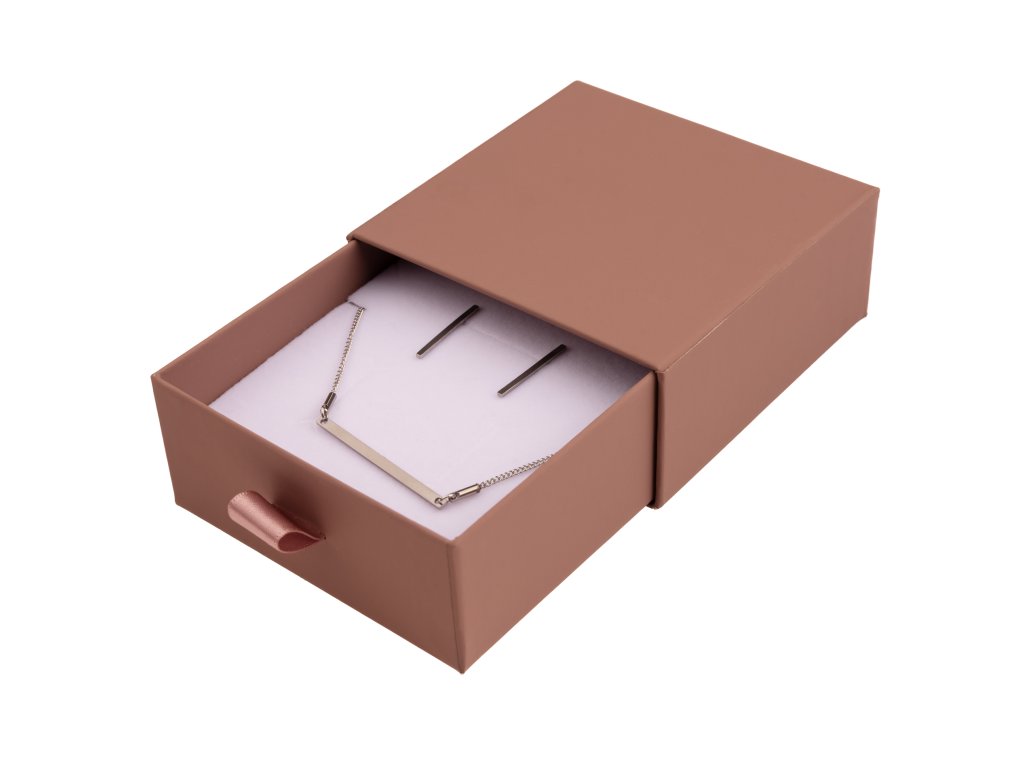 Tahle větší vysouvací dárková krabička je perfektní, když chceš darovat něco výraznějšího — náhrdelník, náramek, masivnější náušnice nebo celou sadu. Vysouvací mechanismus se otevírá pomocí elegantního stužkového úchytu, který dodává celému momentu krásný ceremoniální nádech.