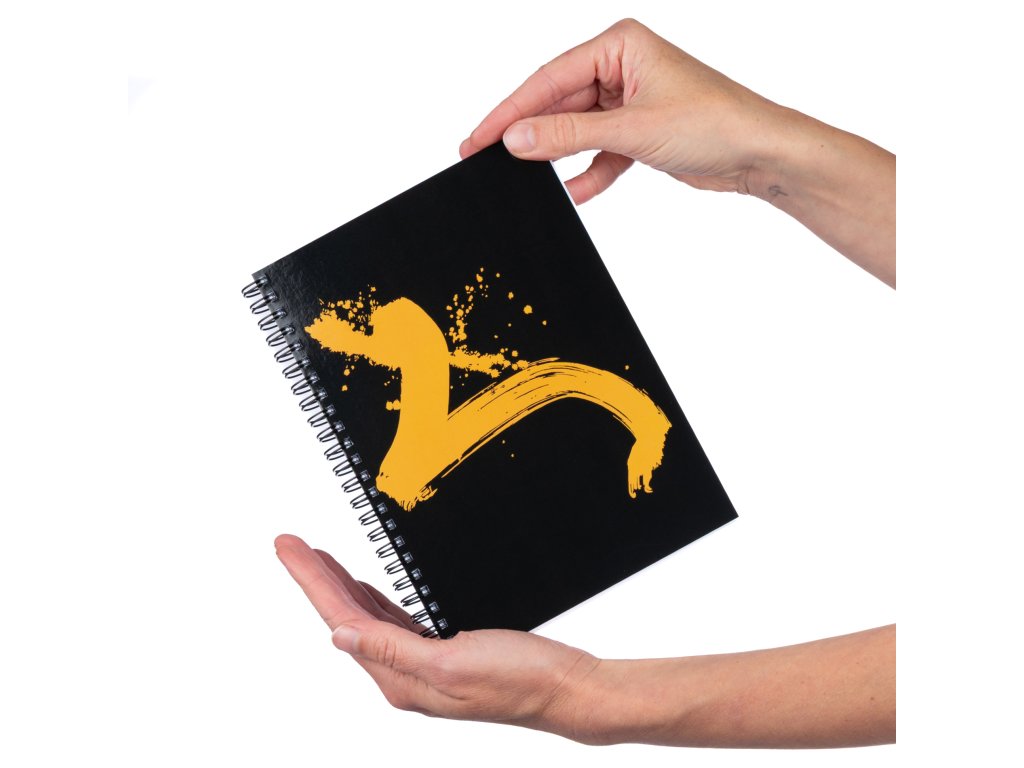 Praktická kroužková vazba, kvalitní papír a nízká váha dělají z našeho zápisníku perfektního parťáka pro každý den. Lesklé a hladké desky zápisníku zdobí náš originální motiv.