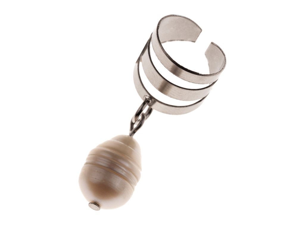 Minimalistická záušnice s bílou říční perlou z chirurgické oceli je jemný šperk, který zaujme na první pohled. Elegantní perla se lehce pohupuje pod uchem a vytváří výrazný, ale stále velmi čistý detail. Záušnice se nasazuje na horní část ucha a není potřeba mít propíchnuté ucho.